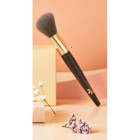 À l’aide d’un pinceau, appliquer le fard à joues sur le bombé de la pommette vers l’extérieur en étirant le reste de la matière vers le haut de l’oreille.