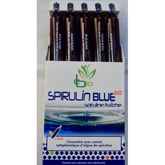 La forme liquide permet une meilleure assimilation qu'une forme sèche. Sa forte concentration en phycocyanine lui confère de multiples bienfaits : Energisant, antioxydant, régénérant. La phycocyanine a démontré selon de multiples études scientifiques son pouvoir chélatant sur les métaux lourds ou encore sa capacité à augmenter le scintillement des rayonnements de radiothérapie ce qui permet d'en diminuer les doses et donc les effets indésirables.