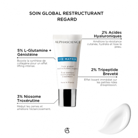 EYE MATRIX atténue l'apparence des cernes et des poches tout en améliorant l'élasticité de la peau. Sa texture gel rafraîchissante lisse les rides et améliore la texture de la peau du contour de l'œil.